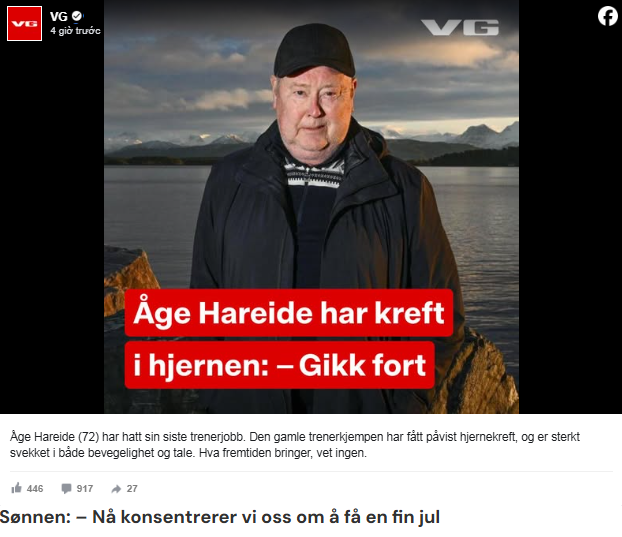 En av Norges mest markante fotballpersonligheter gjennom tidene, Åge Hareide (72), deler nå for første gang at han har fått påvist kreft i hjernen. Den tidligere landslagssjefen forteller om den tøffe høsten, usikkerheten fremover – og håpet som fortsatt står sterkt i familien.