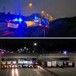 Oppmodingen fra politibetjenten ble raskt besvart av flere lastebilførere