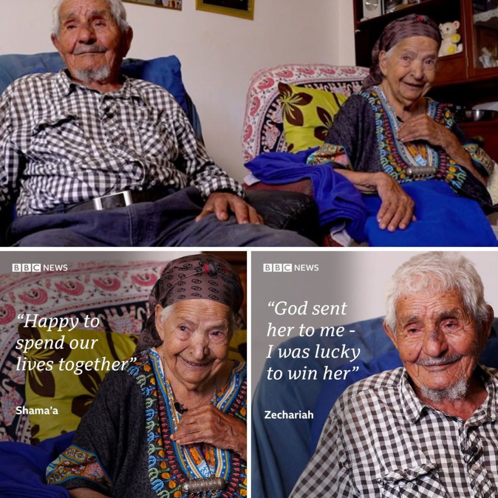 De ble gift som unge foreldreløse i Jemen for å unngå å bli gift utenfor deres jødiske tro og kultur. Etter hvert har de fått 11 barn og 64 barne- og oldebarn. Det er BBC som forteller historien om Zechariah og Shama’a som har overlevd ekstrem fattigdom og forfølgelse, og var noen av de første jemenittiske jødene som flyttet til Israel da staten ble grunnlagt.