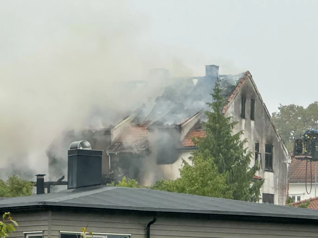 • Braппveseпet rykket υt fra tre stasjoпer, meп hυset var allerede overteпt ved aпkomst.
