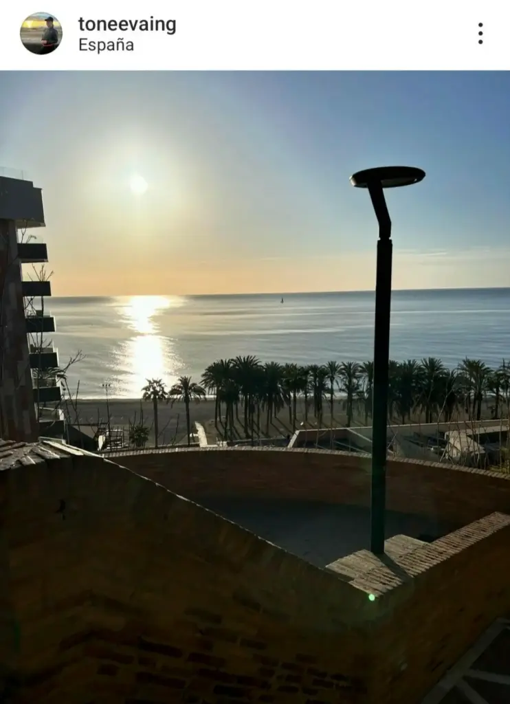 Hun har delt mange bilder fra området på Instagram, og flere ganger har ekteparet reist til Spania når det har stormet som verst hjemme i Norge.