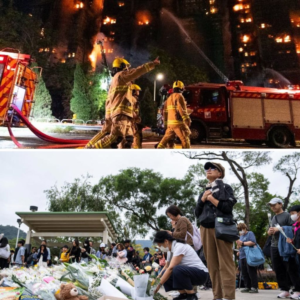 Sju av de åtte høyblokkene i boligkomplekset Wang FUK ble herjet av en brann som startet onsdag ettermiddag i en blokk og spredte seg til de andre. Det var først fredag morgen av brannmannskapene kunne avslutte slukkingen.