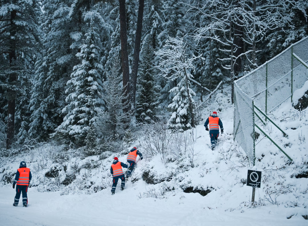Steinstø beskriver søkeforholdene som krevende. Terrenget er dekket av snø, og været skifter mellom dårlig sikt og tung snøvær.