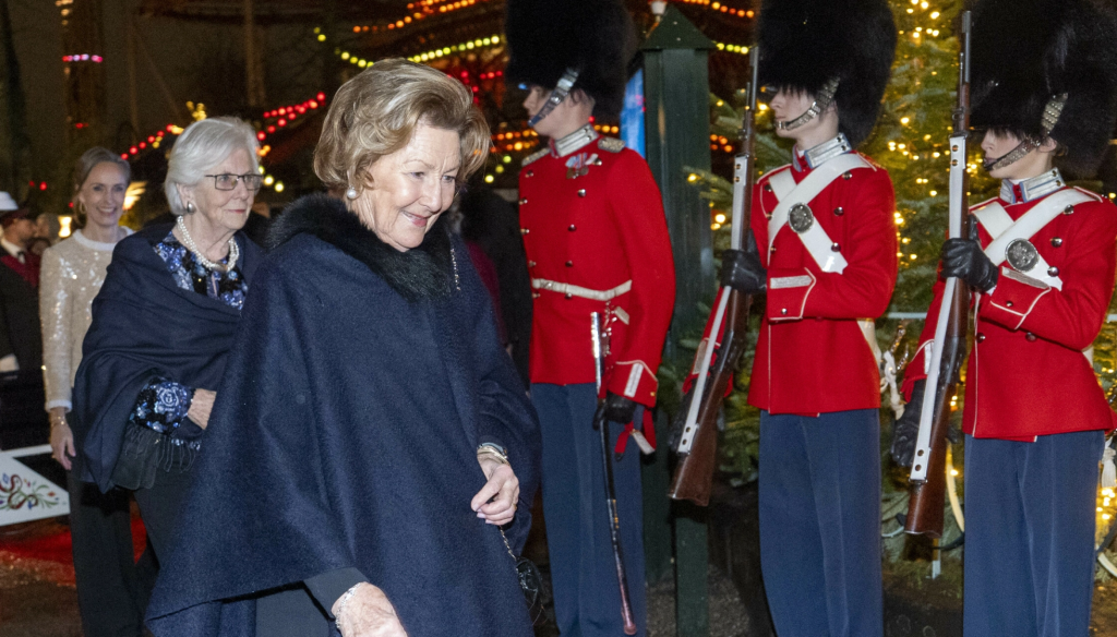 Dronningen selv ankom tidligere enn de fleste, kjørende gjennom parken i en av Tivolis golfbiler – velopplagt og iført sort pels over en sort-rød kjole.