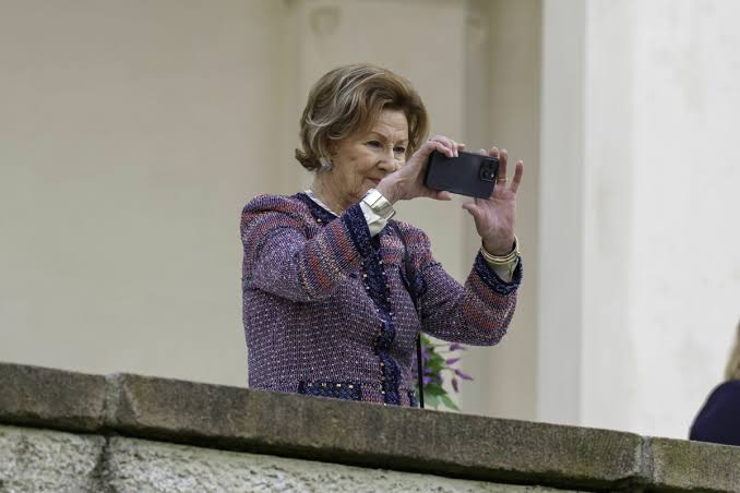 Dronning Sonja er tydeligvis svært flink til å bruke mobilen.