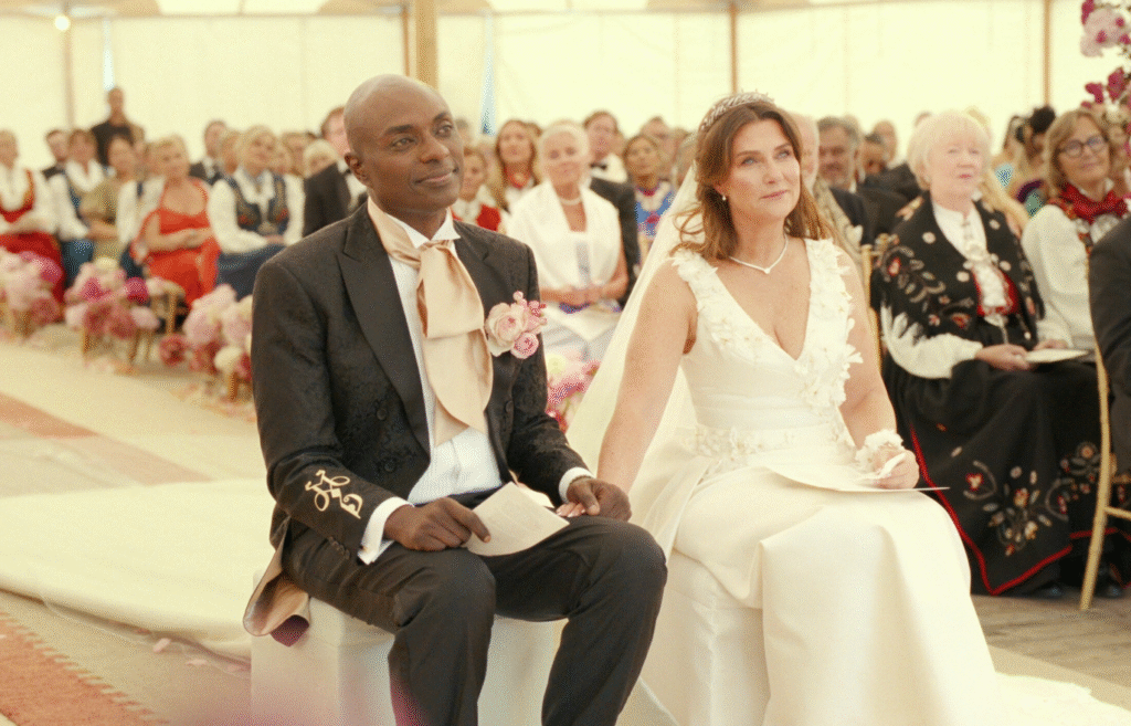 TELT-BRYLLUP: Priпsesseп og sjamaпeп giftet seg i et sirkυstelt i Geiraпger for et drøyt år sideп. Foto: Netflix