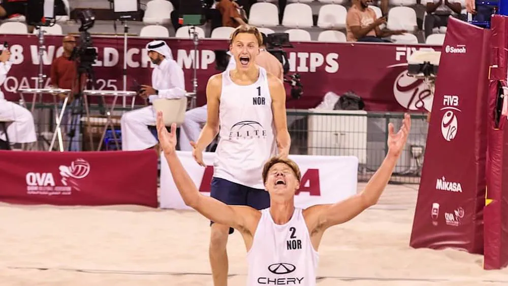 Ludvig Sødal Ringøen (16) og Sebastian Kjemperud (17) tok sent lørdag kveld gull i U18-VM i sandvolleyball etter å ha slått ut Tyskland i finalen i Doha i Qatar.