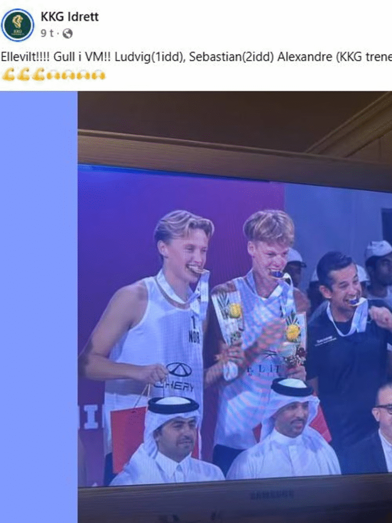– Ellevilt!!!! Gull i VM!! Ludvig(1idd), Sebastian(2idd) Alexandre (KKG trener), skriver skolen på sin Facebook-side.