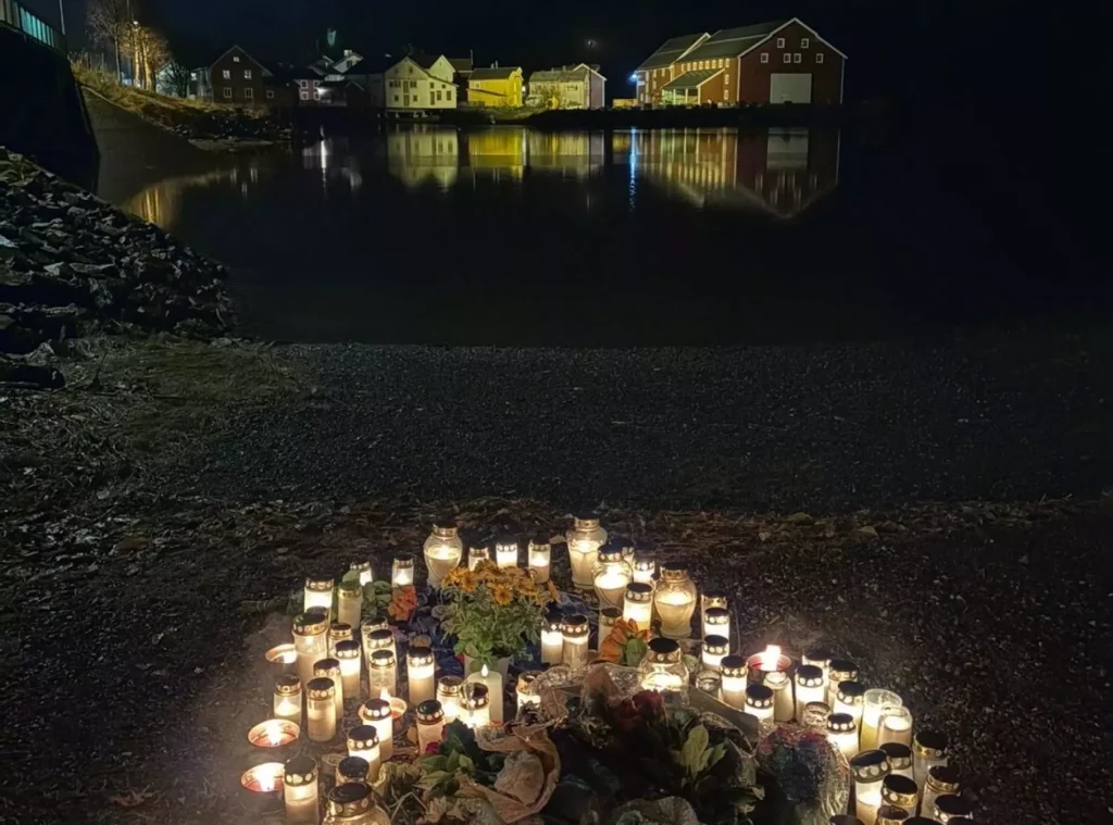 FUNNET DØD: 15 år gamle Mojtaba Alizadeh ble funnet død i vannet i Mosjøen lørdag formiddag. Mange har tent lys og lagt ned blomster til minne om tenåringen. Foto: Enea Sofie Bjørnå-Hårvik