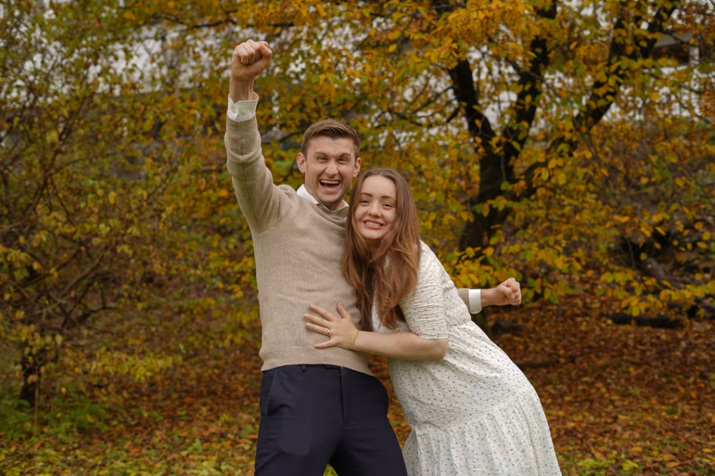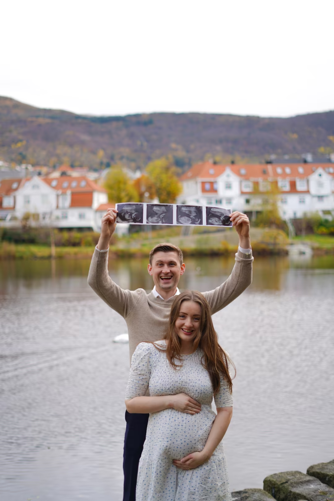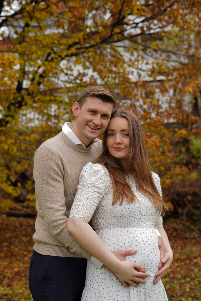 – Julie bærer på en fantastisk gave, og vi gleder oss sånn til å møte gutten vår i februar, skriver ekteparet under bildet.