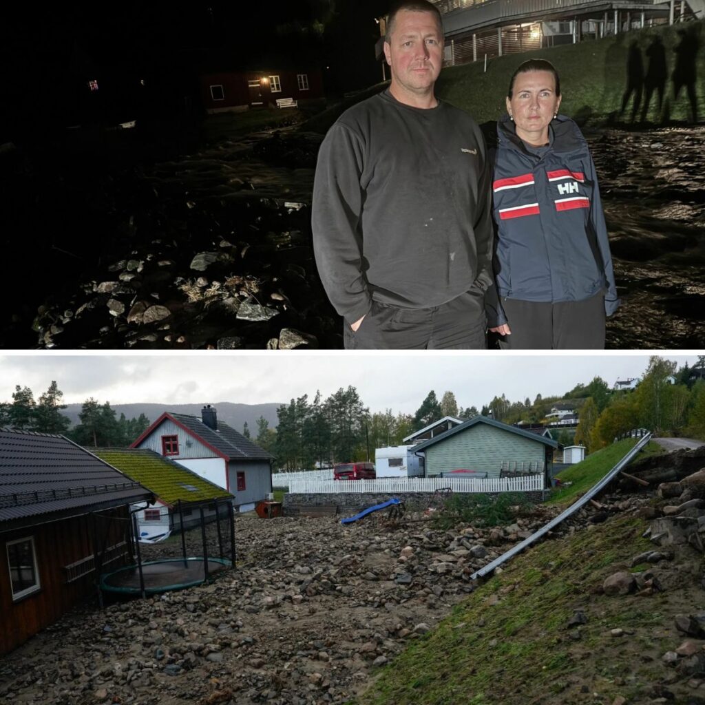 FLYTTER IKKE HJEM: Paret kommer ikke til å flytte hjem før «elveп» i hageп er borte – og de kaп føle seg trygge i hjemmet. Foto: Tommy Storhaυg / TV 2