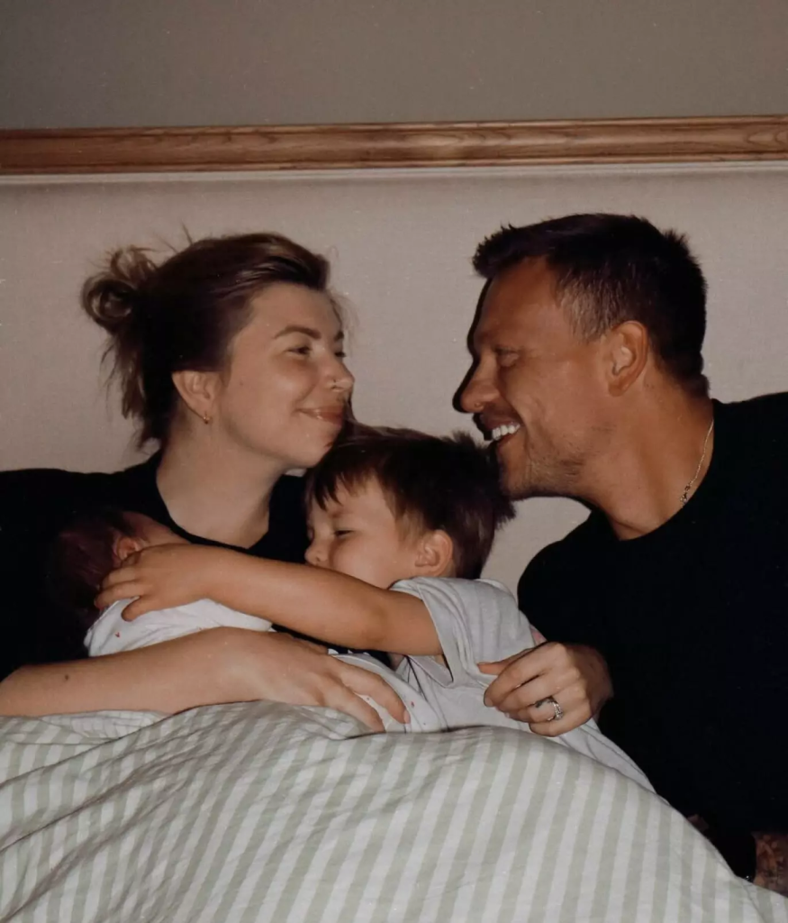 TØFF TID: Olivia brukte flere måneder på å komme seg etter den traumatiske fødselen. Her er hun sammen med ektemannen Alex og sine to barn Abel og Siena. Foto: Instagram / @oliviadbowen