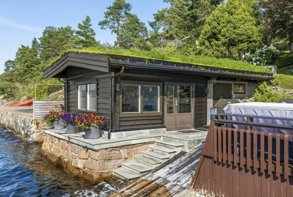 Også deres nye hjem er av eldre dato. Hovedhuset fra 1933 rommer fire soverom, flere stuer og en stor hage på over to mål. På tomten finnes et anneks med stue, kjøkken og bad, i tillegg til privat bryggeanlegg, båthus og hagestue ved vannet. Tomten skråner ned mot fjorden, og kan skilte med en spektakulær utsikt.