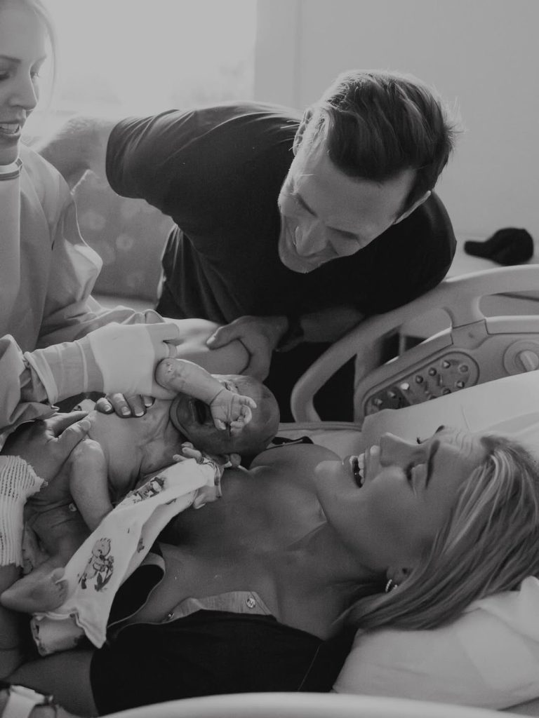 RETT FRA MAGEN: Her blir datteren lagt på mammas bryst for aller første gang. Foto: Skjermbilde: @Brookslaich / Instagram