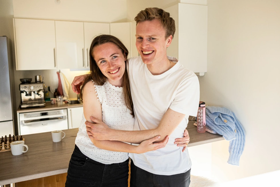 Paret bor sammen i en 55 kvadratmeter stor leilighet – enn så lenge.