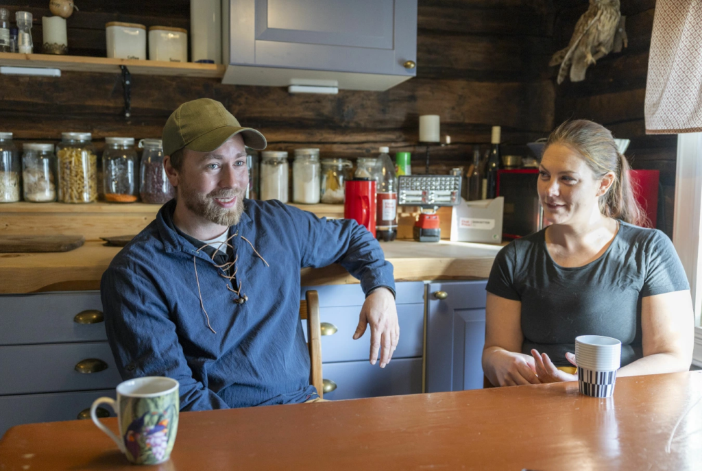 Fra det lille småbruket i Brekkebakkane ser man ned på lave skyer som svever over landskapet i Valdres.Det er likevel ikke høydemeterne som gir Kristian Niklas Johansson (36) og Monica Gundersen (37) følelsen av å sveve på en rosa sky.– Vi koser oss sammen. Det er godt å være her, sier Monica, sittende ved kjøkkenbordet inne i den laftede stua.