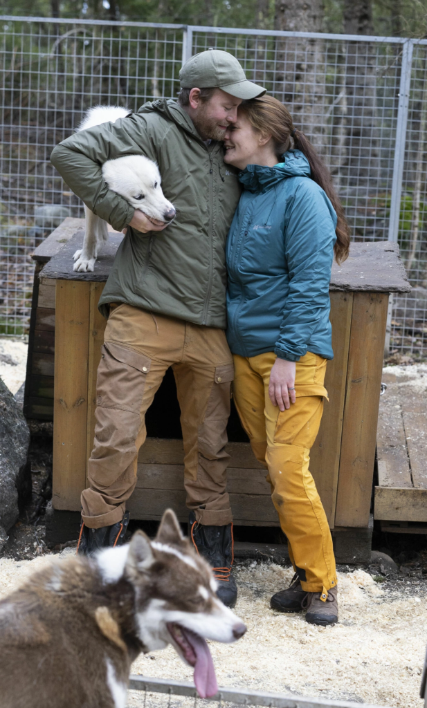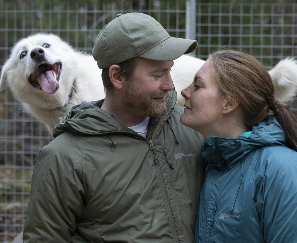 Et kor av ulende Grønlandshunder bryter stillheten i Brekkebakkane, og de firbeinte pelsdyrene hopper ivrige mot de store gjerdene inne fra sin enorme innhegning.Når Kristian ikke er på jobb i fylkeskommunen nede i bygda, går det meste av tiden til de ulvelignende hundene.Nå har han fått en svært kvalifisert medhjelper i Monica.– Det var så herlig den første dagen vi var alene, når innspillingen og alt var over. Hun hadde stått opp litt før meg, og da hun kom inn hadde hun vært og gjort gjerdesjekk, sier han og ler.
