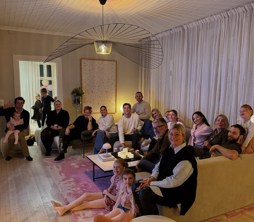 På bildet sitter Cornelia omgitt av venner, familie og barn. Det er lys på bordet, latter i luften og varme i rommet. Det er lett å se at dette ikke bare er en vanlig kveld. Det er en markering. En feiring. Og kanskje et slags vendepunkt?