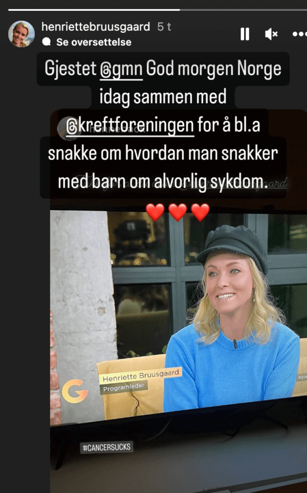 Hun delte dette nylig på sin story etter at hun var gjest hos God morgen Norge.