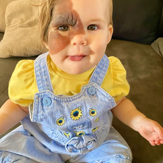 Foreldrene passer nøye på huden hennes, siden fødselsmerket kan øke risikoen for hudkreft senere i livet.