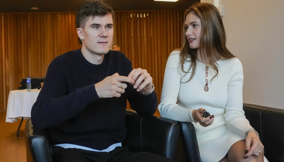 EKTEPAR: Jakob og Elisabeth Asserson Ingebrigtsen, her fra da de møtte pressen i forbindelse med høstens sesong av TV-serien «Born to run» på Bislett stadion. Foto: Terje Pedersen / NTB