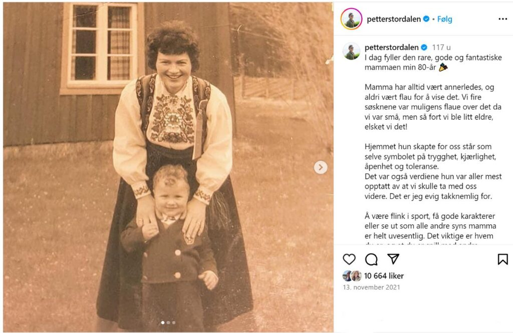 – Mamma har for meg alltid symbolisert raushet, kjærlighet, åpenhet og trygghet. Disse verdiene er de hun virkelig ønsker at vi skal leve etter. Jeg er uendelig takknemlig for det. Gratulerer til alle mammaer i dag. Dere er helter, skrev han på en tidligere morsdag på Facebook.
