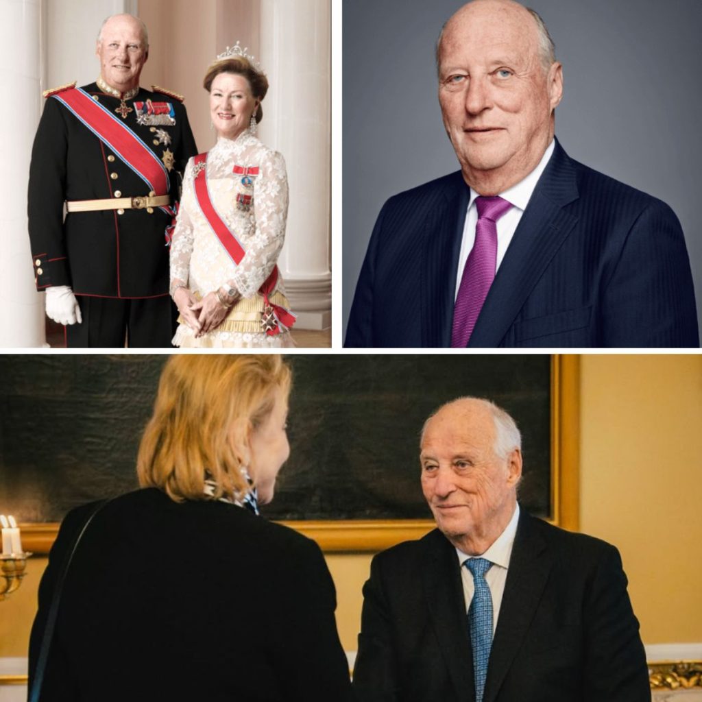 På bildet ser vi Kong Harald i samtale med en av gjestene, med sitt sedvanlige rolige og vennlige uttrykk. Det er tydelig at han, til tross for sin høye alder og tidligere helseutfordringer, fortsatt fyller rollen som Norges monark med stor styrke og tilstedeværelse.