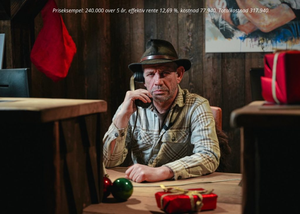 Priseksempel: 240.000 over 5 år, effektiv rente 12,69 %, kostnad 77.940. Totalkostnad 317.940