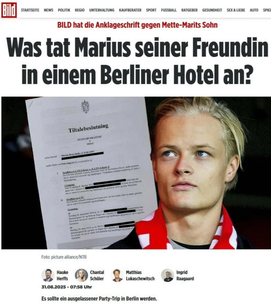 «Hva gjorde Marius mot kvinnen på et hotell i Berlin?» lyder tittelen i avisen, som skriver: «Tilsynelatende skjedde det en hendelse som Marius Borg Høiby snart må svare for i retten».