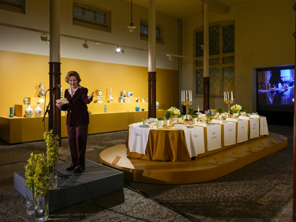 Dronningen startet ved utstillingen «Ved Kongens bord – fra bordstell til samtidskeramikk» i KunstStallen, mens den andre delen av utstillingen er i Ridehuset, der fire samtidskunstnere presenterer sine nye kunstverk.