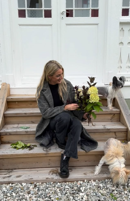 «Høstvær, høstbukett og ny episode av jakten 🍂❤️», skriver hun til et bilde av seg selv på knærne i hagen, hvor hun plukker vakre høstgrener og blader. I ullkåpe og med håret løst, setter hun sammen det som ser ut til å bli en enkel, men stemningsfull bukett.