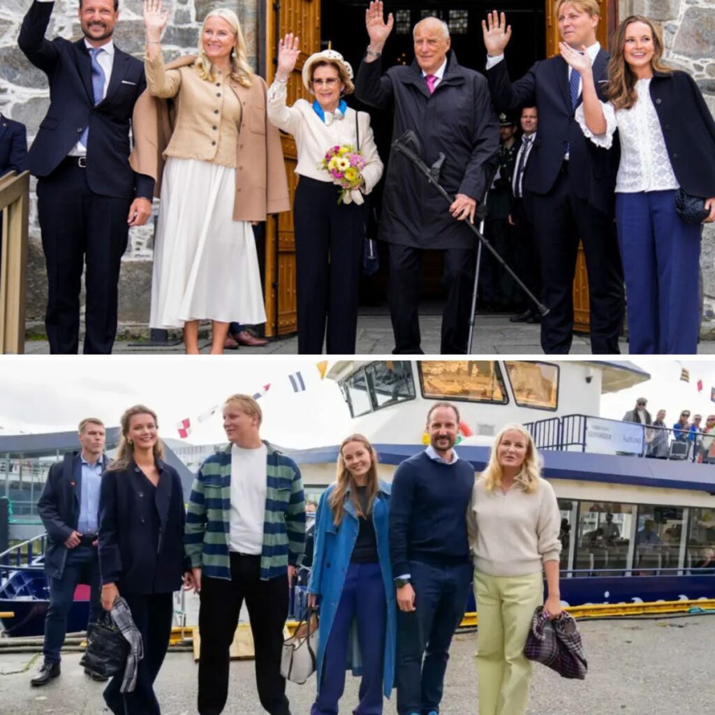 Kong Harald, dronning Sonja, kronprins Haakon, kronprinsesse Mette-Marit, prinsesse Ingrid Alexandra og prins Sverre Magnus. Foto: Fredrik Varfjell / NTB