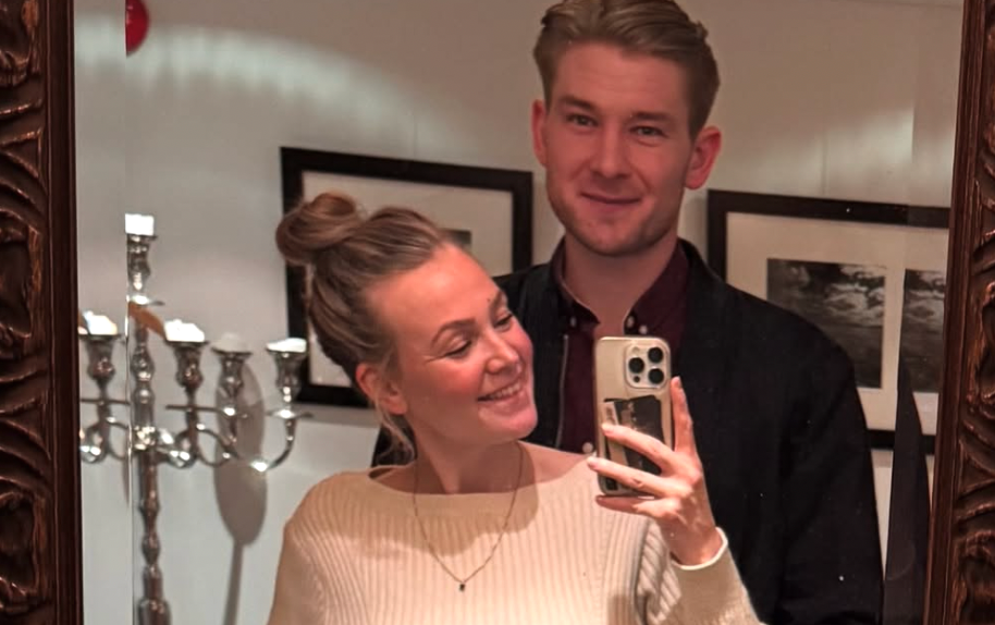 De står hjemme i stua, omringet av lune toner, tente lys og detaljer som bare ekte mennesker kan skape. Men det er ikke interiøret som fanger oppmerksomheten – det er blikket. Smilet. Roen. Kjærligheten.