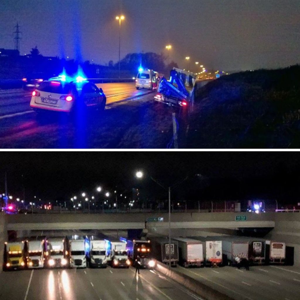 Oppmodingen fra politibetjenten ble raskt besvart av flere lastebilførere. 13 sjåfører dro umiddelbart til broen, parkert midt på motorveien, og dekket hele området under broen. De gjorde slik at mannen ikke kunne hoppe helt til bakken og ikke kunne skade seg så alvorlig som han håpet.