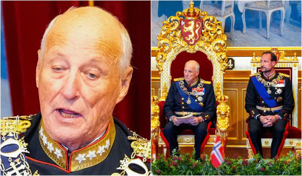 Bildet som ble delt av Det norske kongehuset på Instagram viser far og sønn side om side, begge iført gallauniformer prydet med ordener og bånd. De står foran en blå og gyllen bakgrunn, med alvor og verdighet i blikket. Kongen holder seg stødig med stokk, men står rakrygget, som et tydelig symbol på den fortsatt sterke kongerollen – til tross for en alder som nærmer seg 88 år.