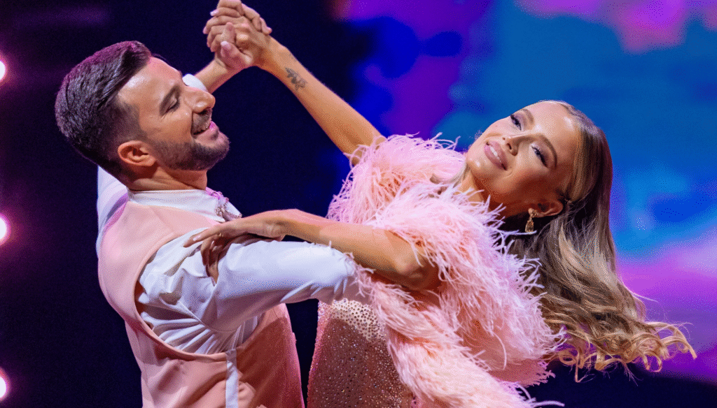 Emma Ellingsen og Catalin Mihu danser Slowfox til «Please Please Please» av Sabrina Carpenter.