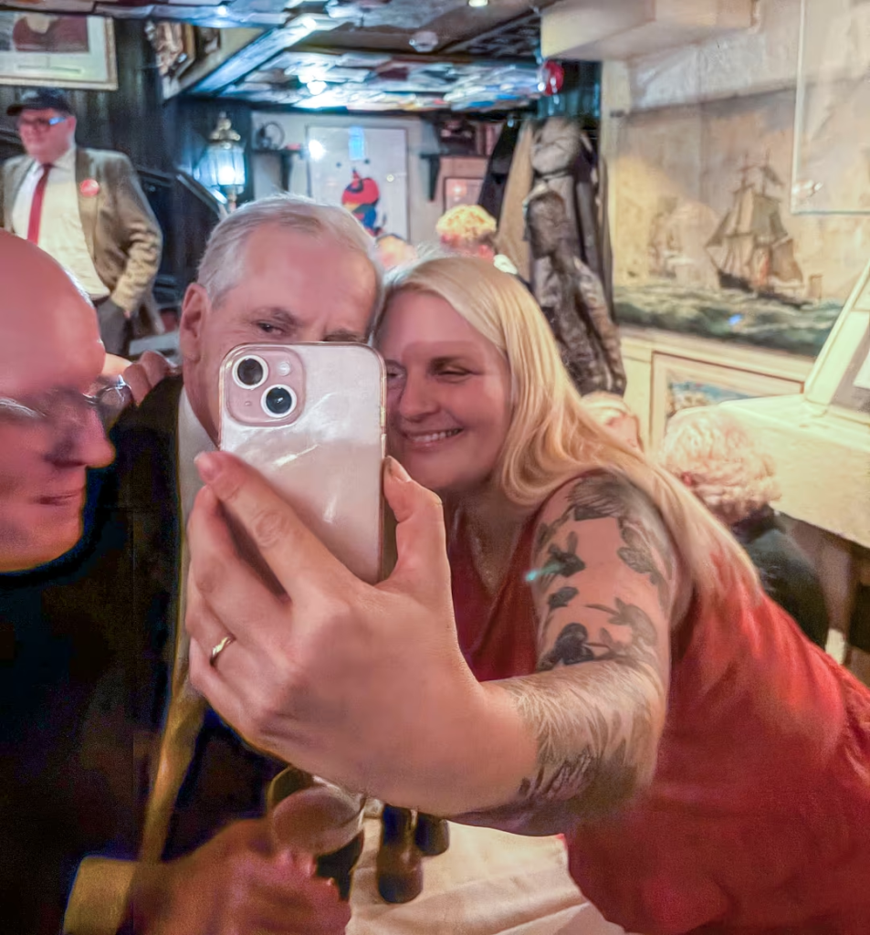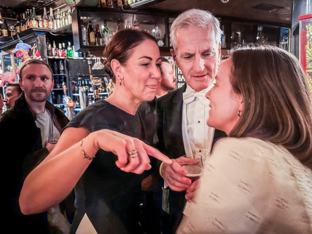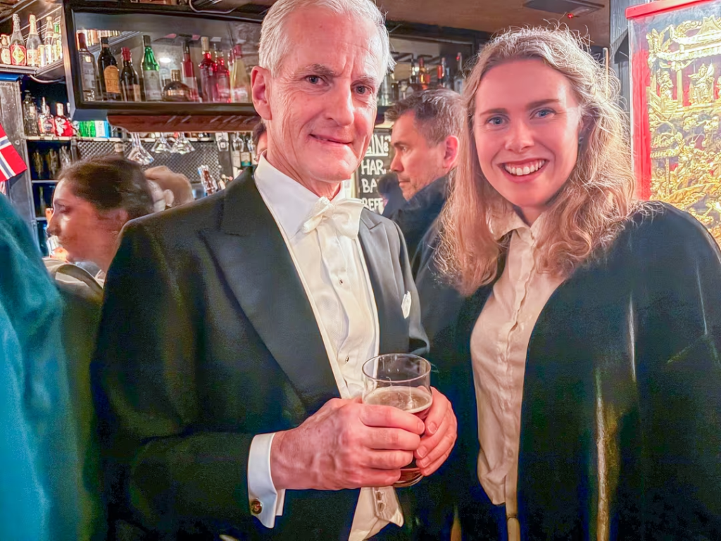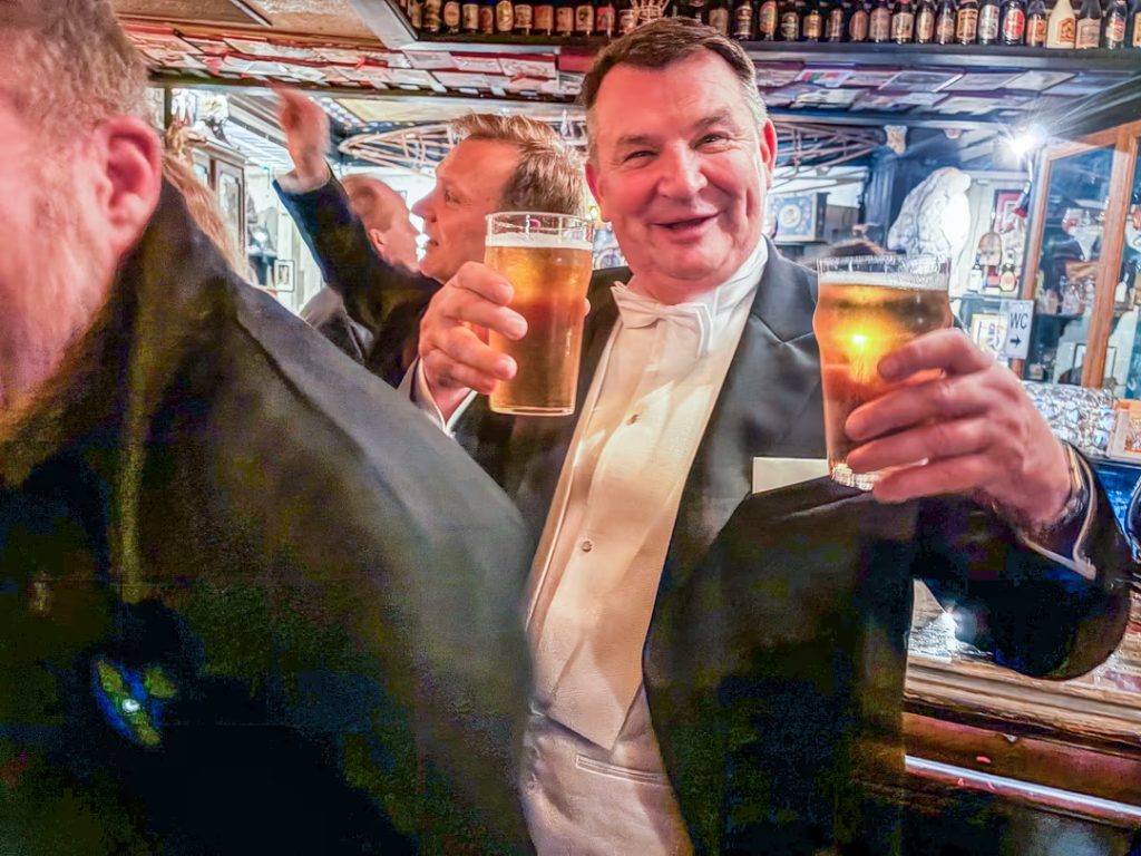Tradisjon tro har statsministeren gått direkte fra pomp og prakt til brun pub sammen med flere politikerkolleger. Det var stinn brakke og kø for å komme inn på det kjente utestedet.