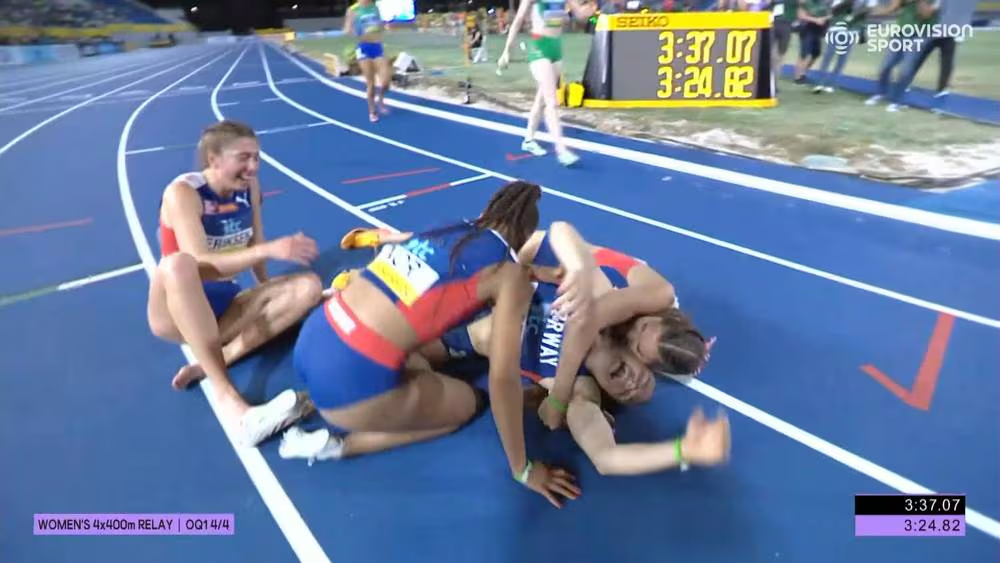 For de norske stafettkvinnene, med Josefine Tomine Eriksen Aks, Amalie Iuel, Lakeri Ertzgaard og Henriette Jæger, tok seg rett til VM-finalen. Tiden 3.23,84 er også norsk rekord, med godt over ett sekund.